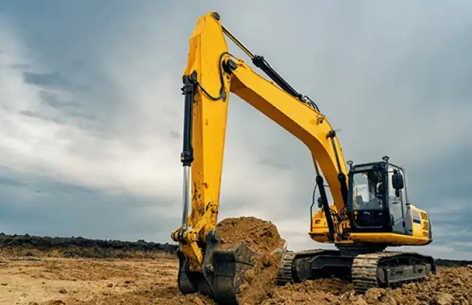Com trabalhos em andamento as construtoras necessitam de máquinas pesadas, como a escavadeira, para melhorar o trabalho dos operários.